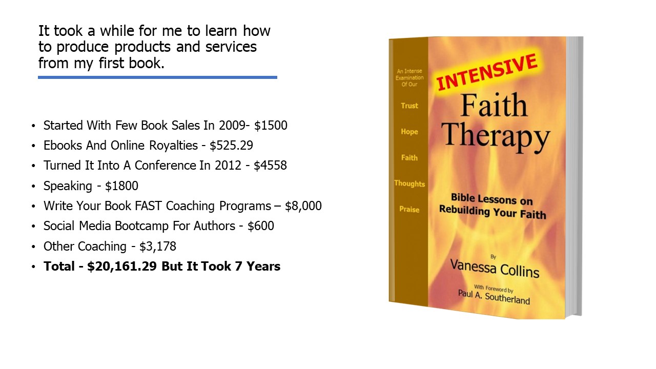 In this 11 module self-study intensive, you will learn how to develop products and services from your book so you can impact lives and be more profitable at the same time. Learn how to make your own 5 figure book deal through product creation.